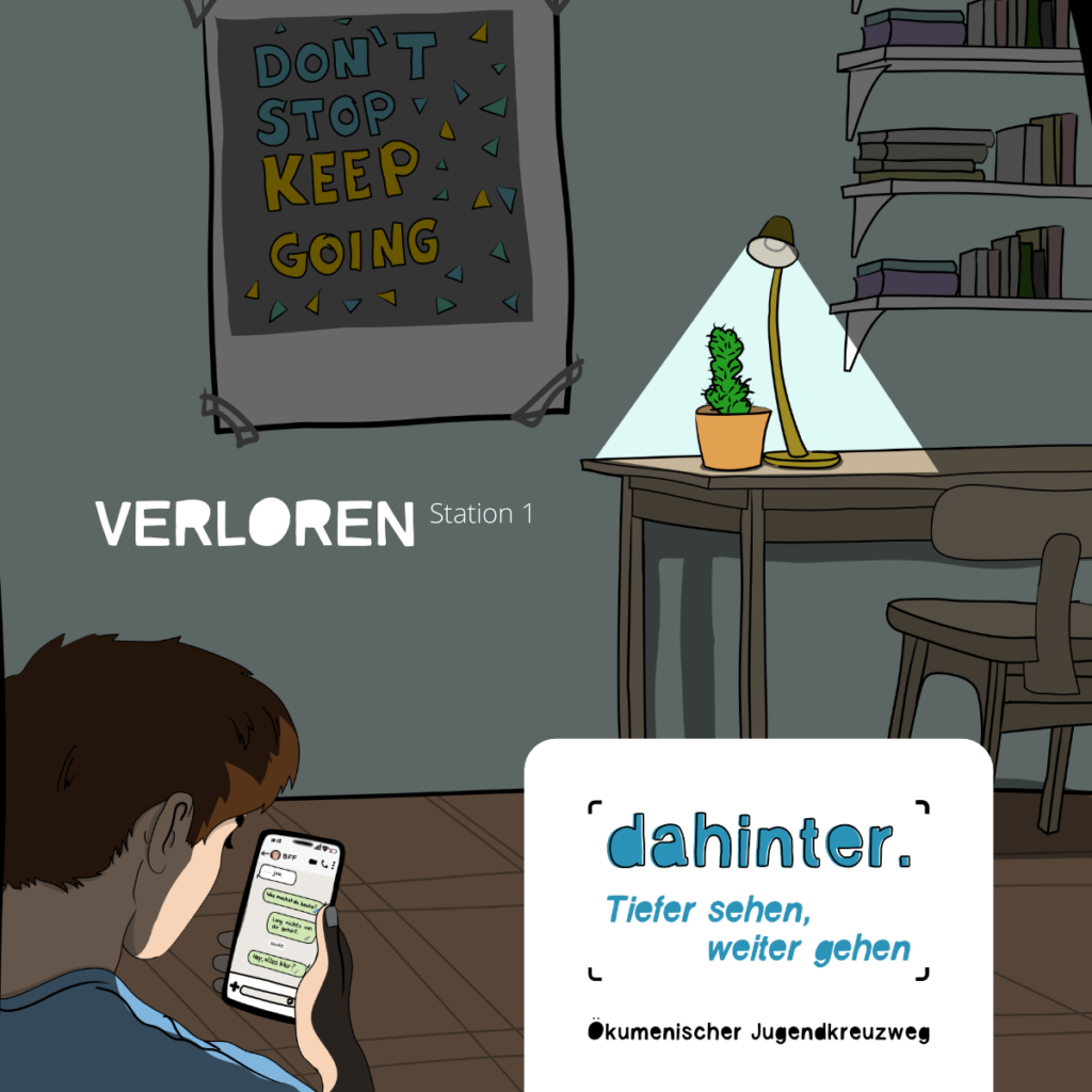 „Dahinter. tiefer sehen – weiter gehen“ – unter dieser Überschrift lädt dich der Kreuzweg ein, ein Stück Weg mit Jesus zu gehen und über DEINEN Weg nachzudenken.